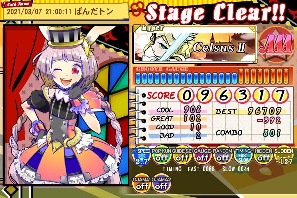 Celsus Ⅱ H AAA BAD2。せっかくCOOL900超えたのに…。