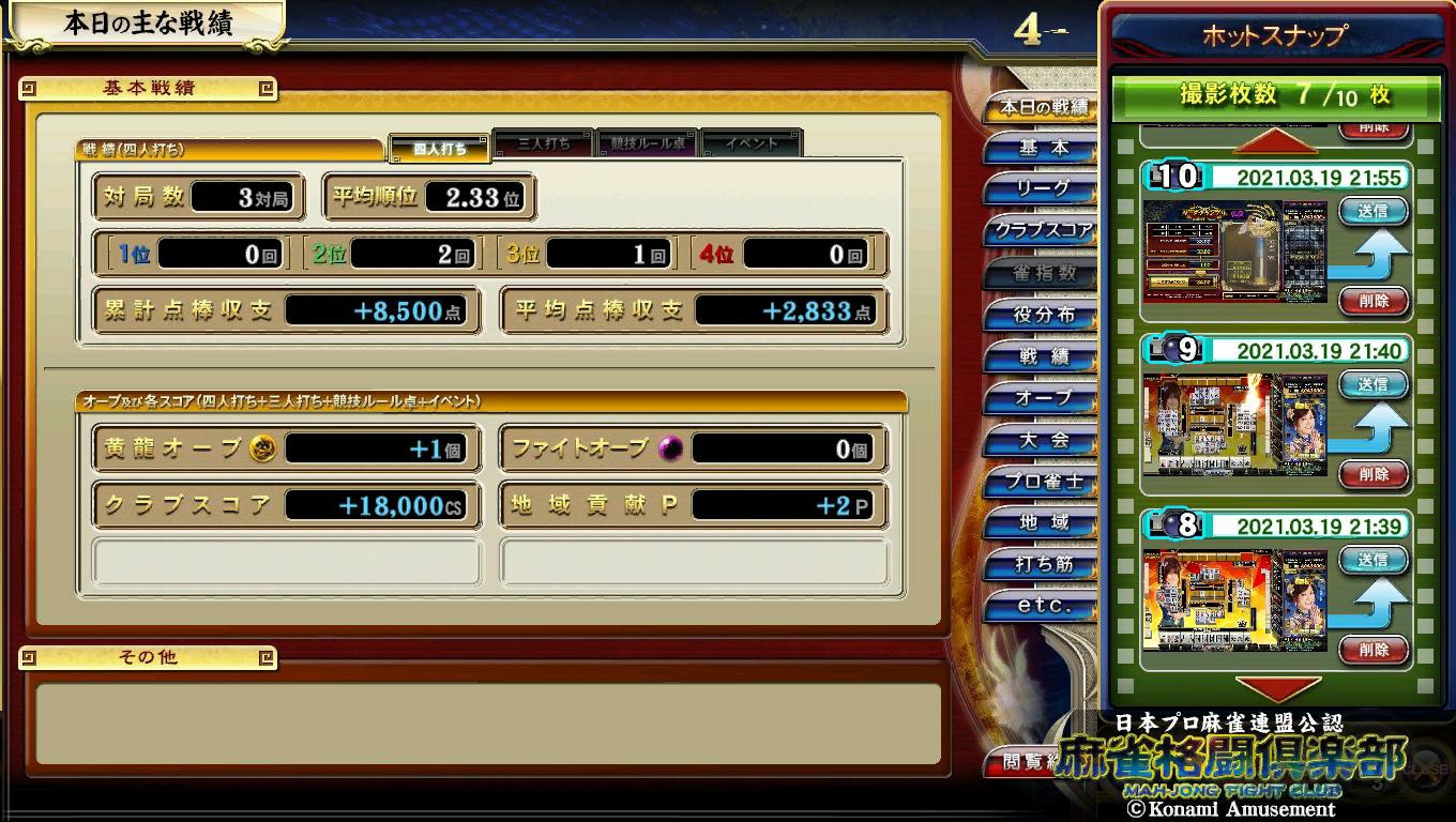 今日の麻格さんはこんな感じ。 ドラ付き跳満2回と、運良く事故らなかったのと、 意地でも振り込まなかったお陰です😫💦 押し引きは大切ですね。勉強になりました😰