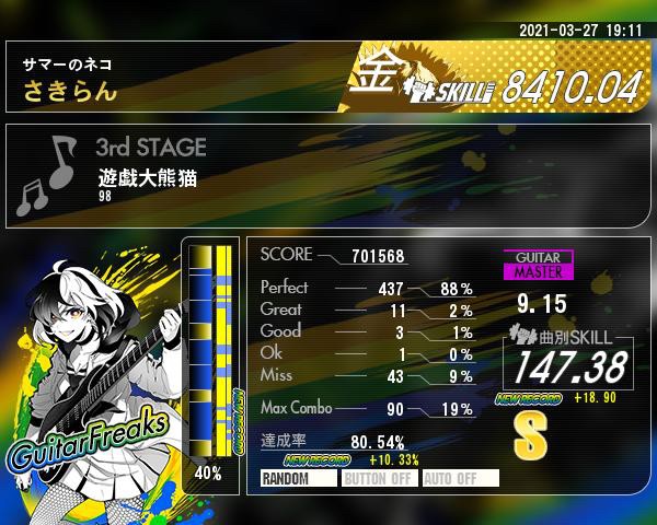 パンダやたら伸びた 譜面もう忘れたけど、多分フルダウンでいけたと思う…と思ったけど2連オルタで対処した方がいい所があったような… これだから鳥頭は