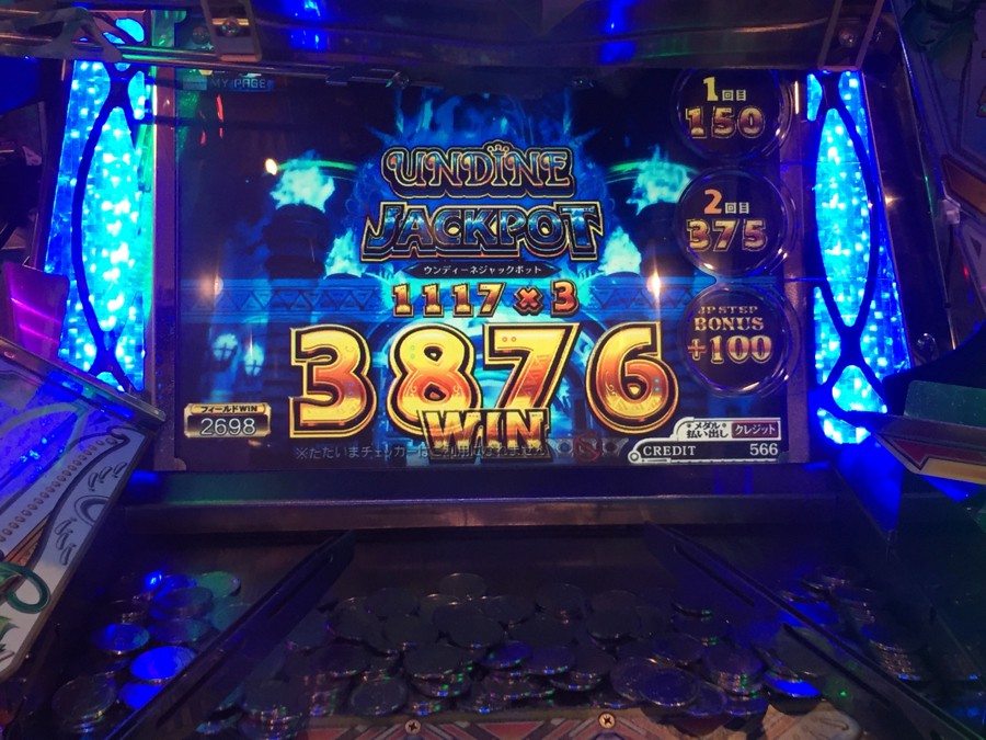 まさかの2台目導入がなされたららぽーとラウワンのフォーチュン。 初ウンディーネJPがあっさりと来た。 3000オーバーの貯留が開始数十分で取られちゃったのは辛いけどしゃーない( ̄▽ ̄;) 雷電も溜まって来たけど、スロットがくそぉ渋いので撤収。