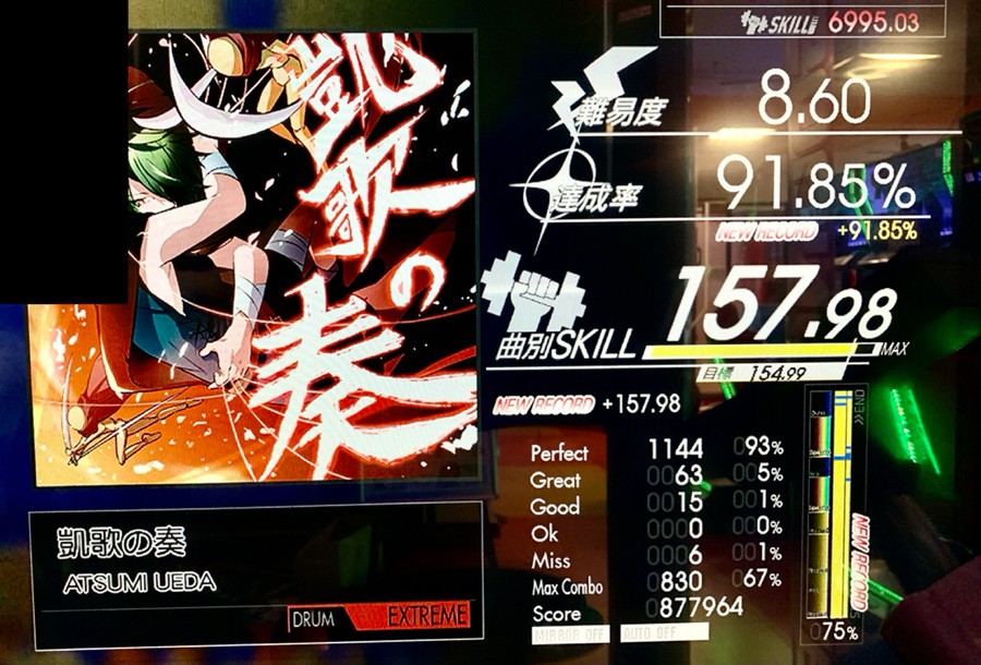 凱歌の奏(EXTREME DRUM)91% あの連打地帯なんとかしたいですよ。 スキル+3.00