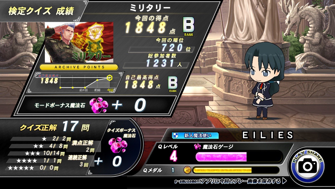 そういえば ミリタリー検定 やったか? なんか挑戦してみたが とりあえず二回目でBか まぁこんなモンかと あ まだマイルーム とか行ってないんで キャラはそそままっす