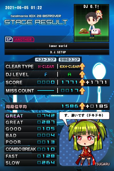 昨日のイチオシから、☆10 lower world(SPA)正規エクハ更新です。 これ自信はなかったんですが、なんとか乗りきれてホッとしてます( ゜∀゜)