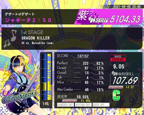 ギターもボチボチやっちょりまふまふ 現状これで対象入り(ギリギリ)と言うw ちなみにスキル上げより高難度特攻に全振りして地力上げ頑張ってますm(_ _)m