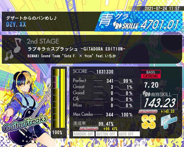 珍しくドラムに人が居たのでギターをば 今作も無事フルコン👍 今作Hotの赤グラ〜銅枠帯が難しいというか、前作が逆詐欺多かっただけなんですが、銅ネがひたすらに遠い気がする😂
