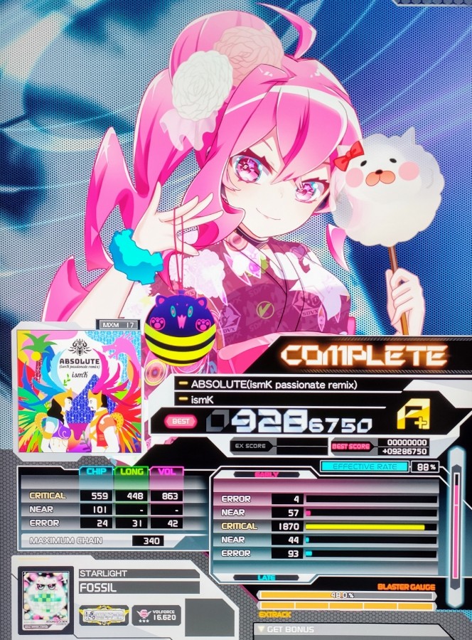 ABSOLUTE(ismK passionate remix)/Lv17/A+ 新規楽曲でクリア達成。終盤に加速するなんて知らないです(笑)