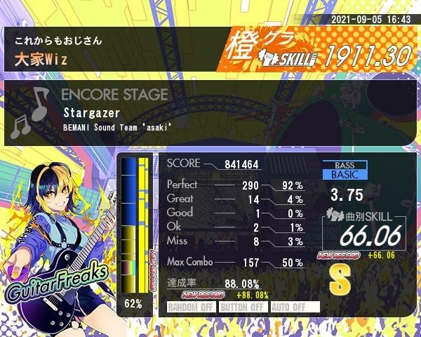 ドラム(今作)は赤ネ。ギター(前作)は黄ネ。 前日からドラムのメンテにより、ギターに挑戦!😣 ラストに選曲したのは、もちろん神曲😃 前作A判定だが、S判定😆 前半のコンボがつながった😉
