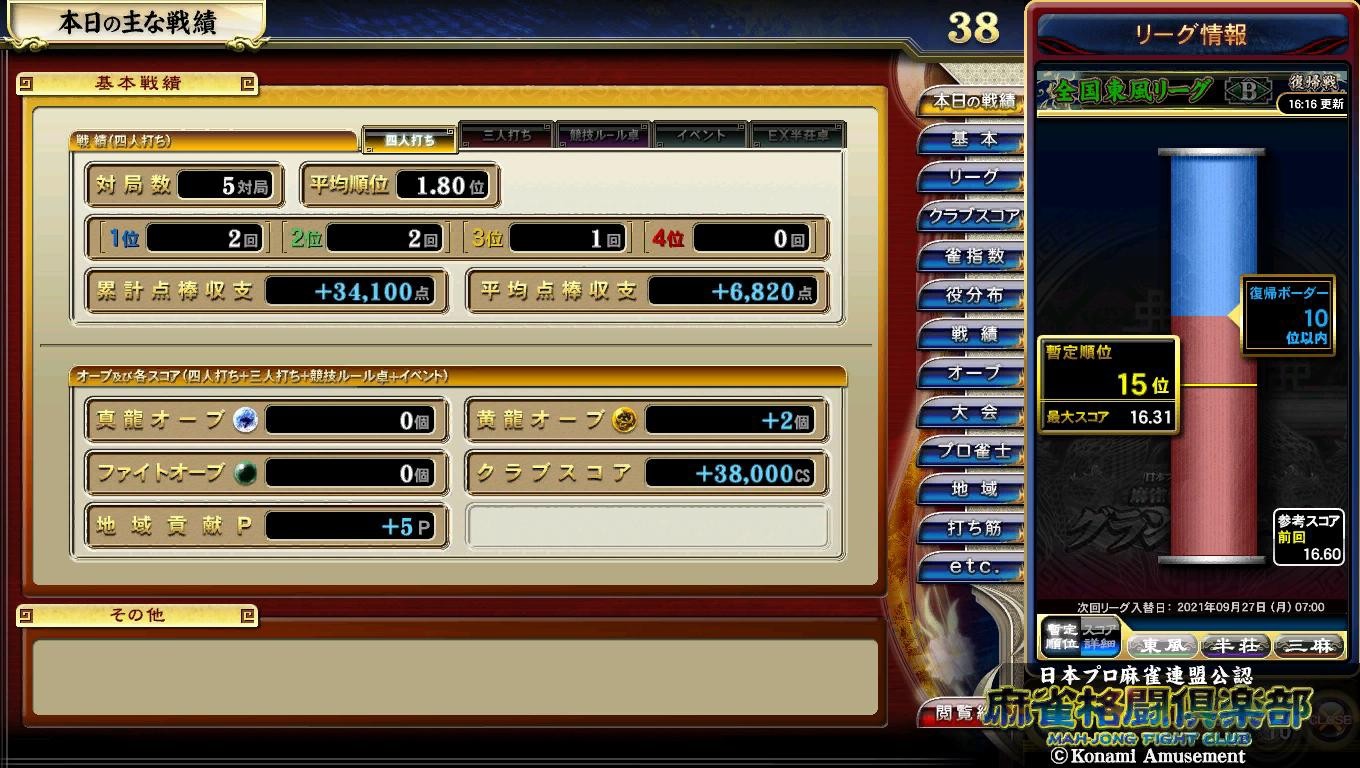 先週ゲーセン行けなくて東風B復帰戦に …ツキ落ちるかな〜と思ってたけど案外好調キープ♪ 2勝して真珠ゼロですがw