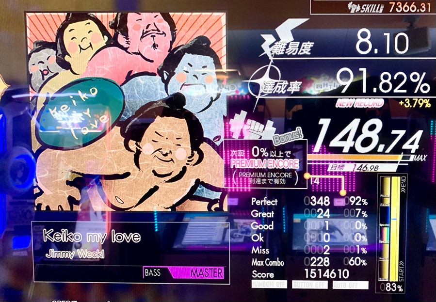 keiko my love(MASTER BASS)91% 微妙な切り方してしもうた。パヘ率もうちょい欲しいですかな。 スキル+1.77