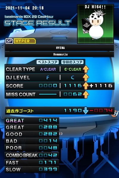 ☆9HYENA ゲージギリギリでしたが最後の12467同時押せてゲージ82% イージークリアしました(≧▽≦)