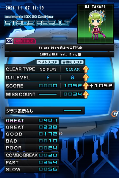 「We are Disっ娘よっつ打ち命」(SPA) Lv9にチャレンジ! 初プレーでクリアが付きました♪ この曲の連続皿はそこまで難しくはなさそうですね♪
