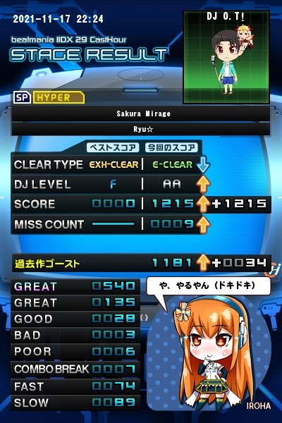 続いて弐寺いきます。 今日のイチオシから、☆8 Sakura Mirage(SPH)正規です。 前作なにこの腑抜けたスコアは(;゚∀゚)