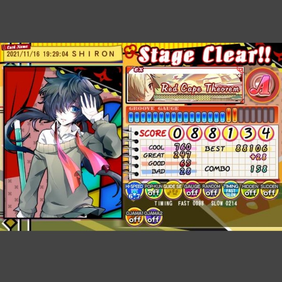 Red Cape Theorem(EX) 言うほど45に居て良い譜面かこれ?クリアするのに4回かかったわ