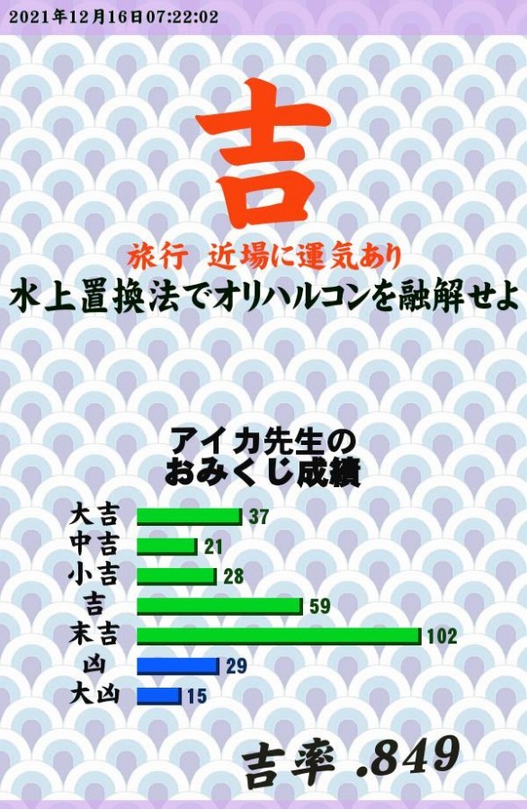 おはようございます(*- -)(*_ _) 金土日と物凄く寒くなるようですね~ 備えを忘れずに~ 今日のおみくじは吉! http://p.eagate.573.jp/gate/e/toomikuji.html?from=article