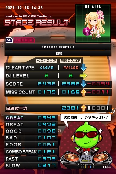 うっかり落ちちゃったけれども着実に10ずつBPは減ってきている、なのに2回目で出したスコアに追いつかない(今6回目ぐらい)
