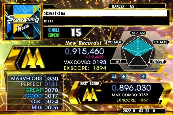 昨日の良収穫 今年のもう一つの目標としてハイスピード630を越える! というのもあるんですが、コレには適用するほど低速の密度が無かったね。 コイツの問題点はBPM180の長い地団駄移動発狂が2度登場することかな? 足14じゃ強すぎるし足15では入門……ぐらいでしょうか。