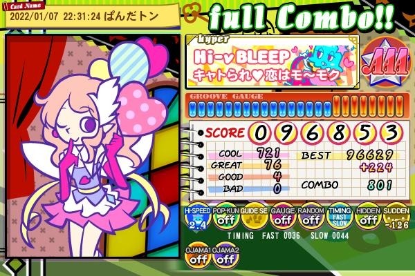 Hi-νブリープH フルコンスコア更新AAA。なんか伸びた。