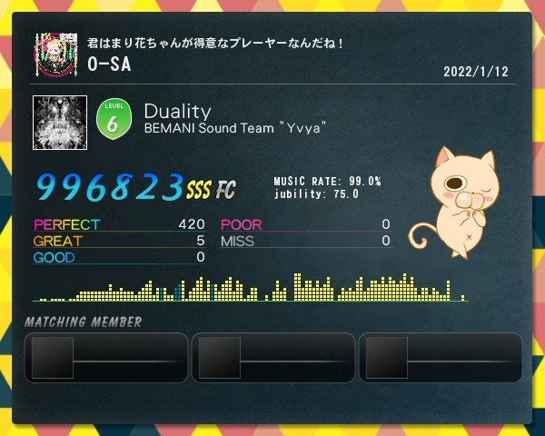 お開きの後ちょっとだけプレーしました。 12日の指から、Duality(BAS)フルコンです。