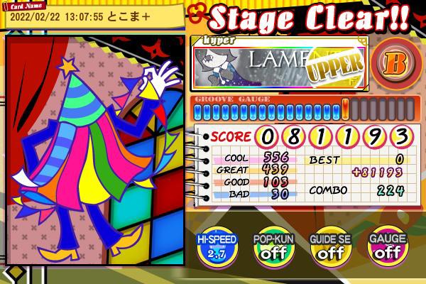 ラメント アッパー 負けアニメがねこちゃんなのを思い出したので サビ終わってから結構削られ始めて元譜面で発狂あたりでボーダー割ったけどなんとか食らいついた…えらい