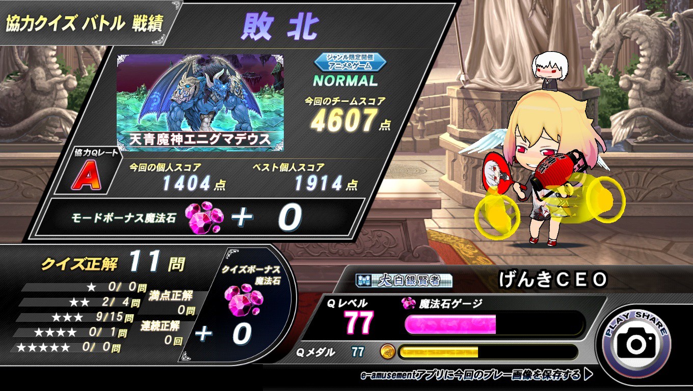 この回、協力クイズが全問不正解だったかも…。でもQレートが落ちなかっただけ、マシかな…。
