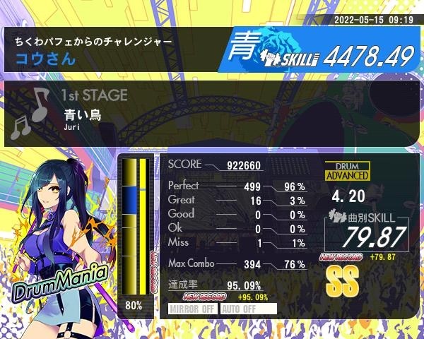 5/15日分、青い鳥(黄ドラム)、テイク1