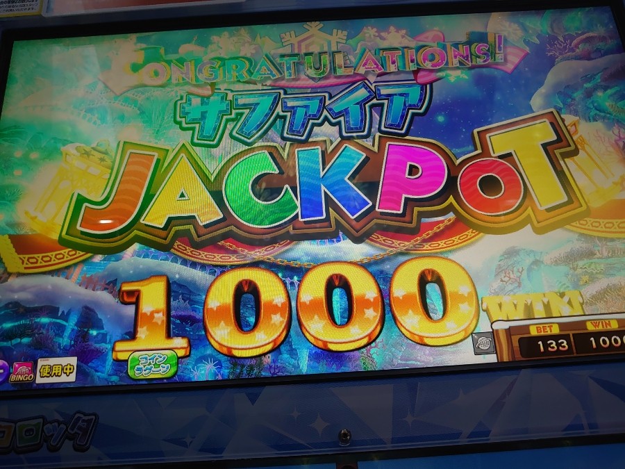 仕事がコロナの影響で急遽休業になり、 とりあえずトパーズJPC狙いするが、 ワンダーチャンスでゴールするも サファイヤにしか止まらない・・・ つつもサファイヤジャックポット1000枚獲得 #カラコロッタ