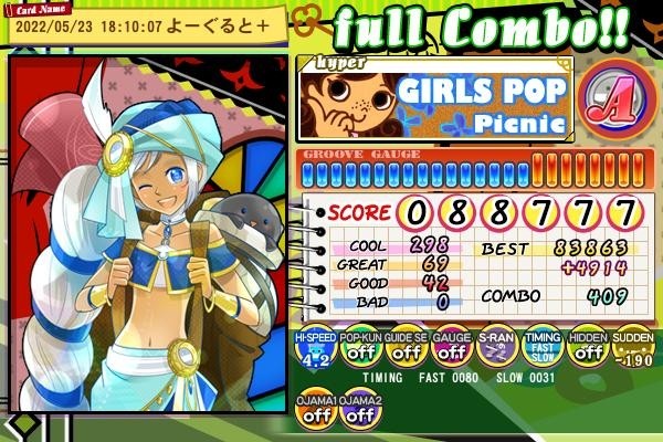 フルコン難譜面の代表格(譜面Lv32。フルコン難度Lv45相当?) 発狂でこぼしてアーとかいうつもりでした(笑) S乱初フルコンw これpopn stage出身の曲なんですよね。懐かしい(^^)