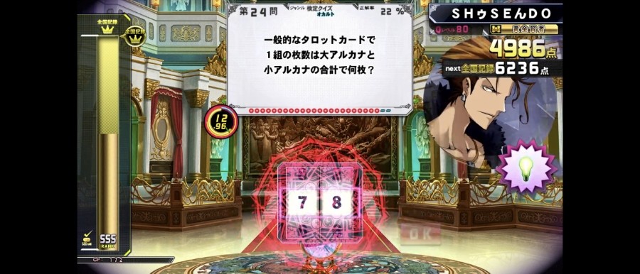 トランプやカルタは見たこと無いんですが、タロットカードなら見た事あるのよ💦💦 「大アルカナ」が戦車とか星とかの合計22枚で「小アルカナ」の剣、棍棒、盃、金が14枚ずつの56枚で合計78枚よ☠️☠️