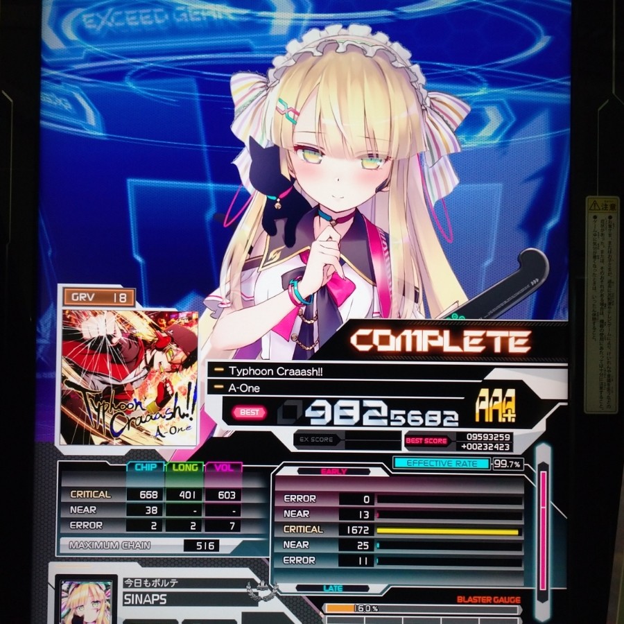 Typhoon Craaash!! GRV スコア伸び!トリルは光るけど、普通に道中で落としてる