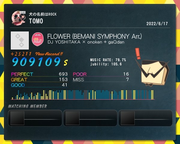 FLOWER (BEMANI SYMPHONY Arr.) MTお題、この楽曲をクリアより* スコア更新、S乗りました(´` )★