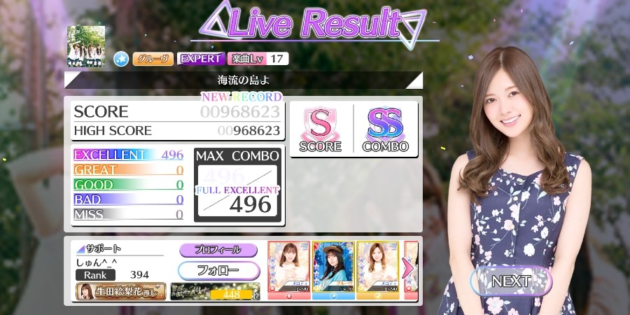 「乃木坂46リズムフェスティバル」よりイベント楽曲 海流の島よ EXPERT ☆17 簡単すぎたのか、余裕でFULL EXCELLENTが取れちゃいました~!!✌️😉
