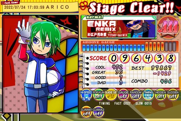 ポップンのリザルト載せ、エンカREMIX(N)どこでミスしてたんだっけと思いながらやってて、押すタイミング迷った感じある。