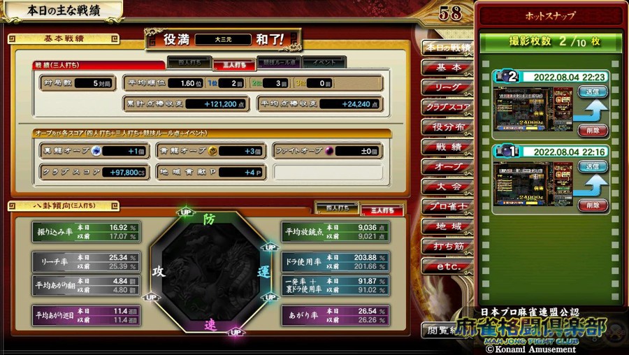 サブカ3号(ともたんサポートカード)のサンマの成績です。 久しぶりに大勝しました。゚(゚´Д`゚)゚。