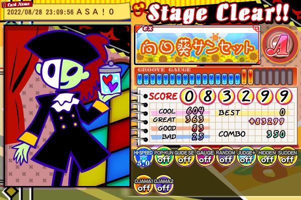 向日葵サンセット EX! ちょいちょい溢しつつもキツくはないかな…と思ったら最後の方の同時押しで死ぬかと思った。_:(´ཀ`」 ∠):_