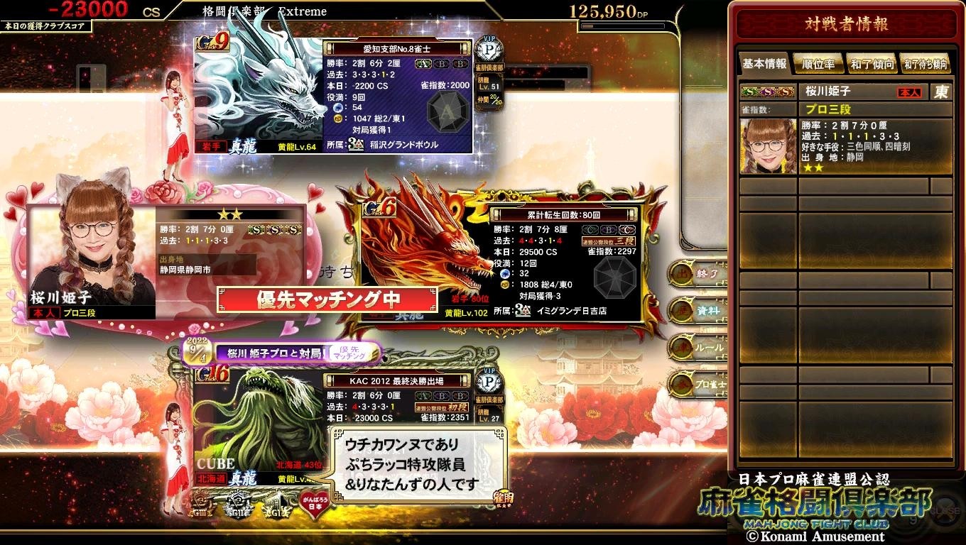 本日の東風:0-1-2-0 本日の三麻:8-7-2 本日の姫ちゃんチャレンジ…113秒暗転からの 「見た目こんな感じですけど、油断したら痛い目に遭いますよ~?」 今日も無事降臨でした(^-^)