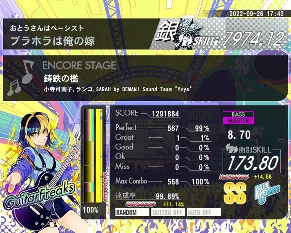 鋳鉄の檻紫Bまさかのフルコンボ! びっくりしすぎて腰抜かしました……今作初の虹帯で金ネームに向けて大きく一歩前進!