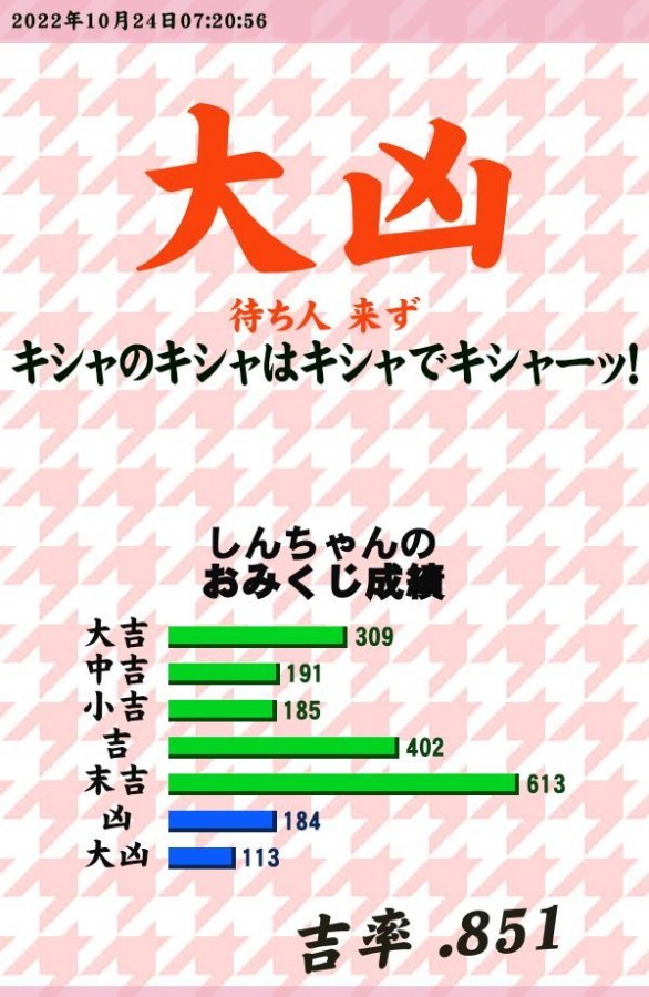 おはこんばんちウルトラぴえん☆ シュウアケー、頑張りましょ。 http://p.eagate.573.jp/gate/e/toomikuji.html?from=article