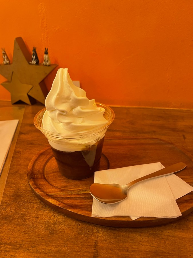 将棋めし外伝? 千駄ヶ谷の将棋会館近くのレティエというお店の ほうじ茶ゼリー なのですが、このお店はソフトクリーム🍦の名店でもあります。 ソフトクリームのコクすごい!