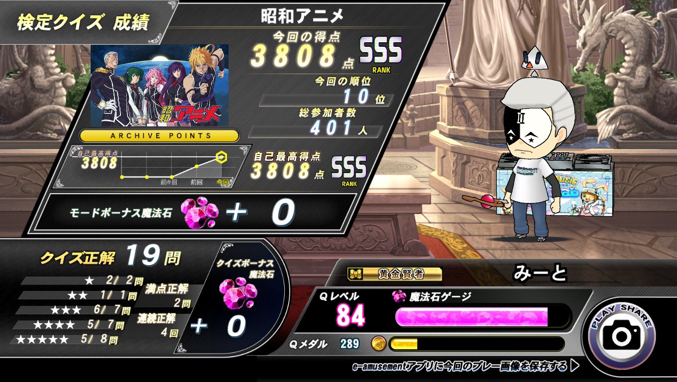 昨日のアニメ消化しながら、昭和アニメ検定プレイ。 2クレでSSS出たけど、ハイジ原作者やら空手バカ一代原作漫画の作画知ってるのに、凡ミスしたのが地味に悔しい。 ながらプレイはダメやねw