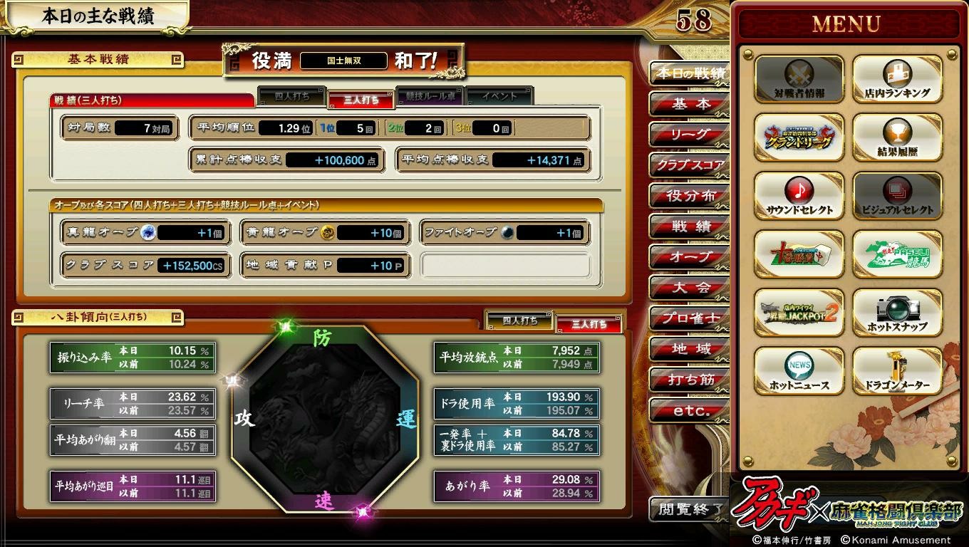 メインの秋刀魚 2戦目に本日の初和了が国士。 3戦目から急に良くなりました。 初戦の内容から5連勝出来るとは思って無かったです。 文句無しの結果で大満足です。 サブカは先の3投稿が東1局で発生したので即止めで。
