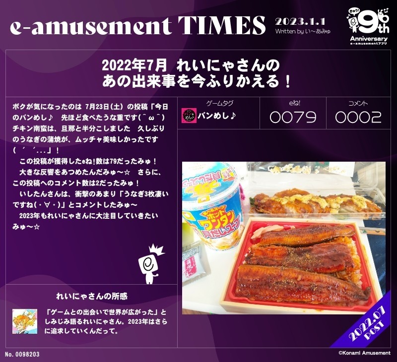 2022年7月のイーアミュ新聞📰 土用の丑の日、ということで、 うな重を食べる前の時の記事でした(^ω^)🐟