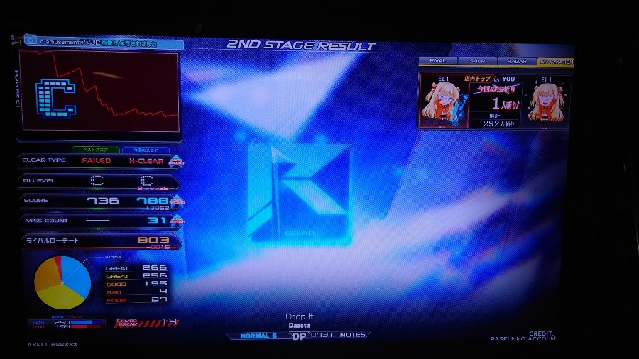 楽曲タイトル Drop It DPレベル6(正規)。 バージョン HEROIC VERSE 新規ハードランプです。