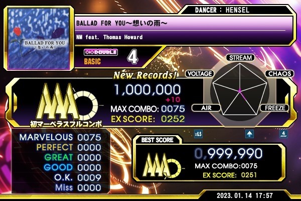 最後のリズムが難しく何回か涙を飲んだが、ようやくMFC達成。