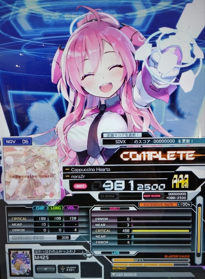 今日(1/20)のやらかし Lv6 Cappuccino Hearts(NOV) 4ERROR & AAA+ つまみからの同時押しに引っかかった… #ボルテ #SDVX