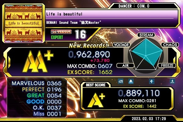 今回も2000キロカロリー消費できたし〆に足16 しょーもないミスで1切り 次こそはフルコン!