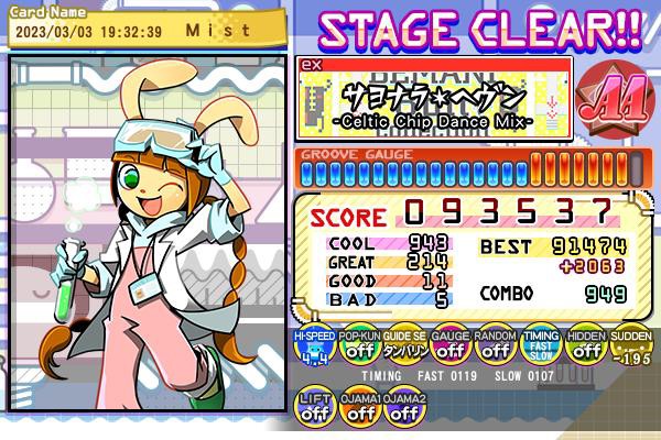 接続狙った気でいたが多種多様な切り方してたので、その切り方パターンを再検証しないといけなさげ。 スコアの伸び方だけは随分良かったがね。