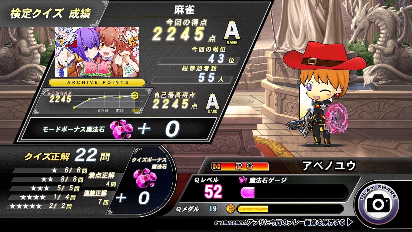 麻雀検定試しにやってみたけど事前にMリーグ関連の知識とか過去問の予習していたおかげでまぁまぁな点数取れて良かった~!