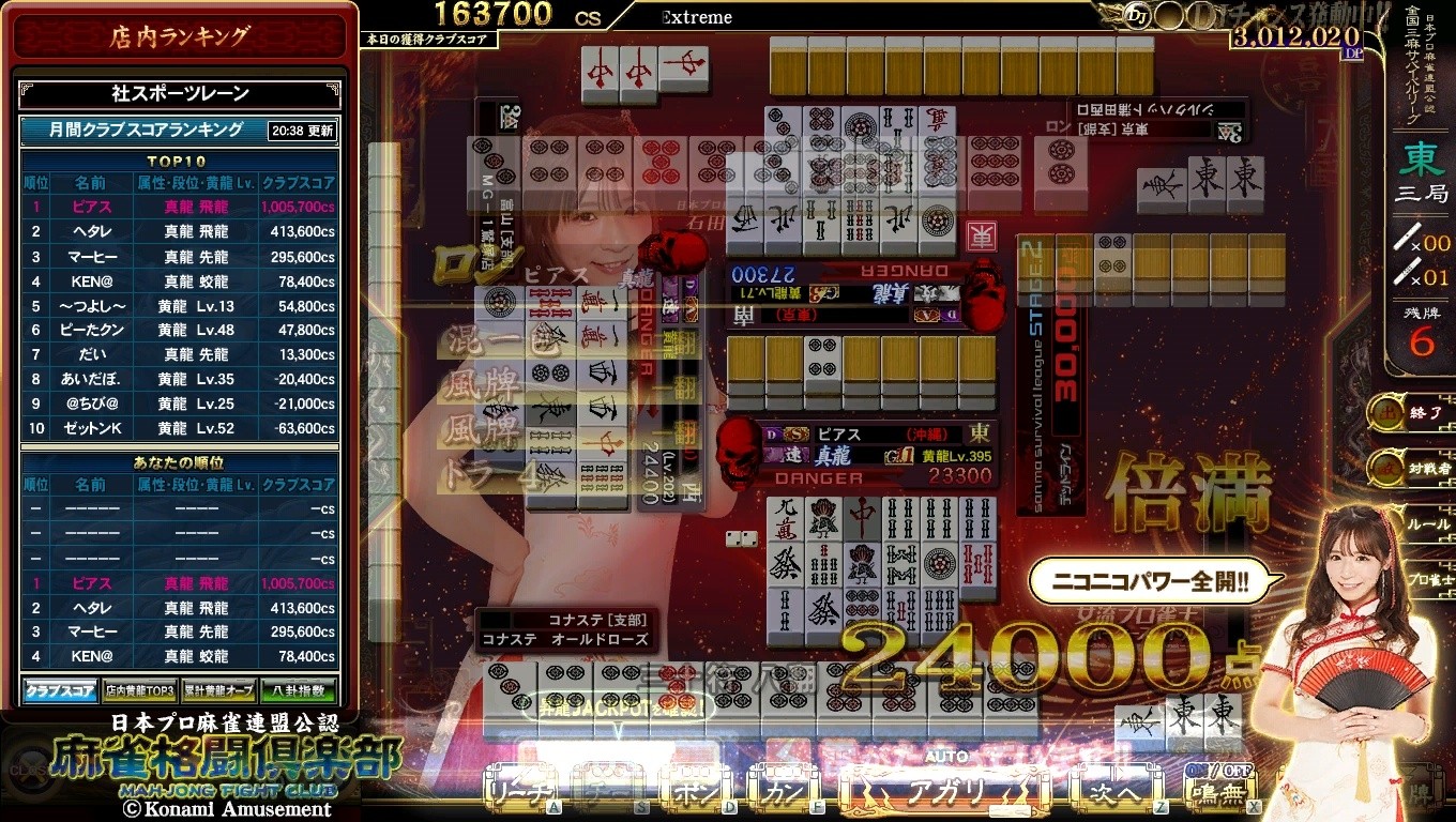 最終盤に上家から②ロン、ニコニコパワー全開!!親倍