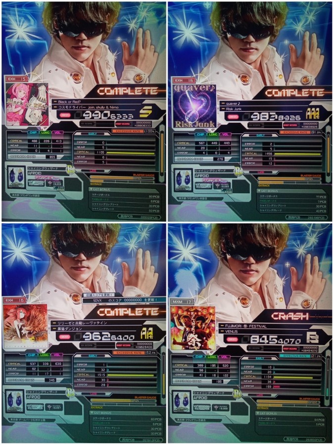 遅くなりましたがリフレク曲やってきました。 ポリシーブレイクとは何だったのかと 言いたくなるくらいの強奪ぶりですね。ぼにゅ。 黒赤ラクドス教団ってそんな人気ありましたっけ? 他にボルテ向きの曲は謎の黒猫神とかいろいろありそうなものですが。 ギリギリスキル対象となりました。 ♪は人気だと思ってます。 ハイスピード変わるタイミングが表示されて こんなに早いんだと思いました。 リリーゼとか逆になかったんだってレベル。 デコヒって入ってましたっけ? 鍵盤押し負けてるのが反省点。 そしてふじもり。わーいげきちーん。 逆方向に見えるツマミがダメ過ぎます。 そして難易度で藤森の顔がアップにならないのもダメです。 (それはリミックスの方)