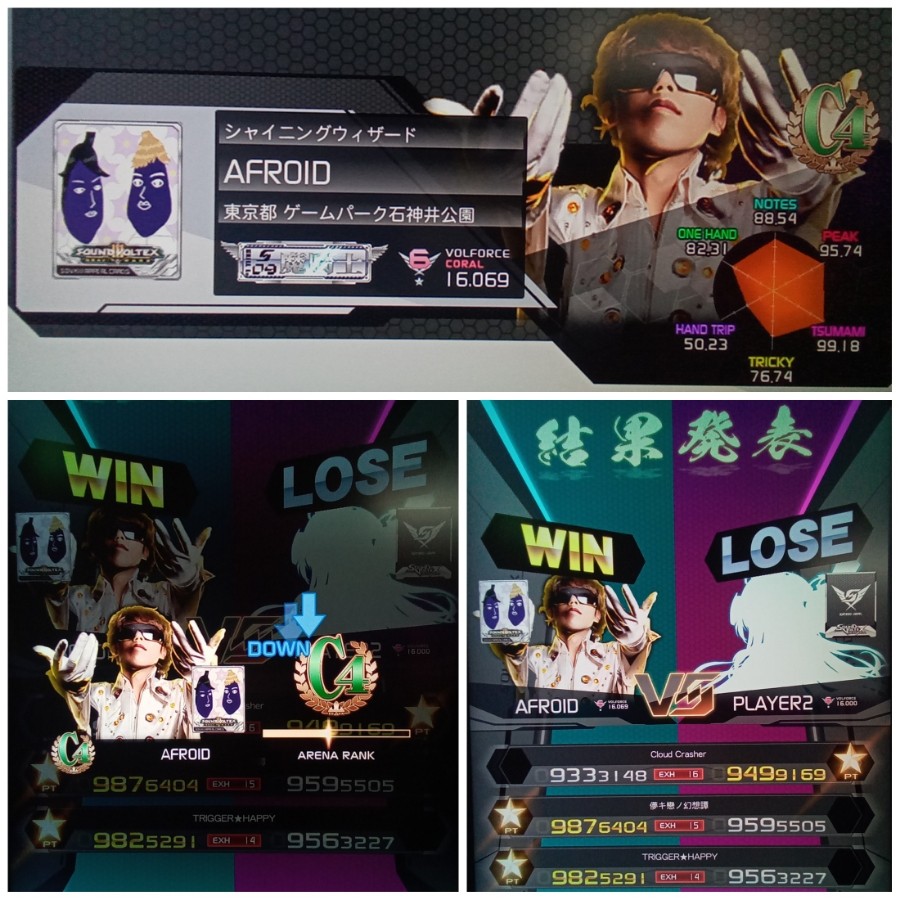 池袋のボルテがどこも混んでたので ポツンとヴァルキリーの石神井公園まで戻って 1クレだけタイマンバトルやりました。 まず自分のレーダーがおかしい。 「ボルテの死因の9割がツマミ」と言ってるのに なんでツマミが伸びてるんじゃ。 16までは極端が出張がないのでハントリが凹んでるのは妥当。 そして日曜日の18時とはいえ C4はバトルする層が薄いと思い予想通り無人でしたが こ れ で レ ー ト 下 が る の か よ COM相手に1譜面負けると下がるのかな? 少し検証してみることにしますがまあびっくりでした。 COMが難易度違ってもスコアほぼ一緒なのも納得いかない点。